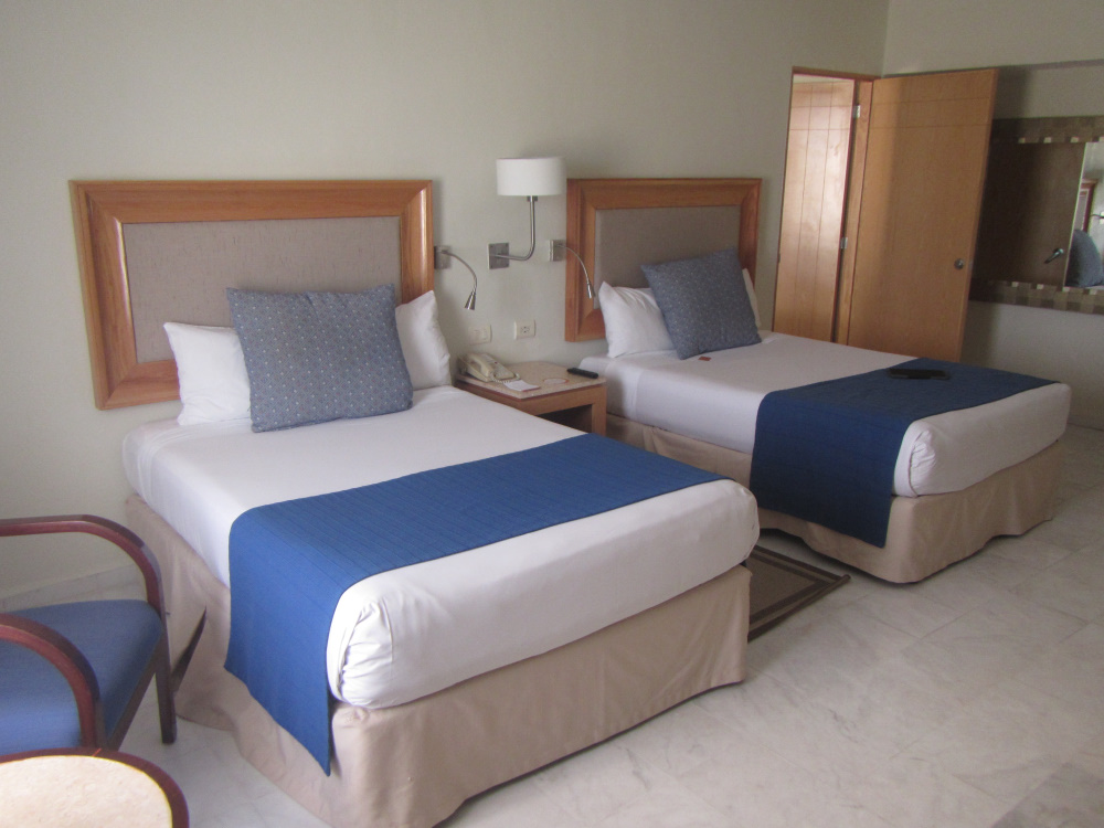 Après 3h de de bus de la marque Oriente ensuite on a fait 30 min de bus. Après nous sommes allé à l ’ hôtel (Park royal Cancun ulinclusif (ndrl: all inclusive)), on a une suite de deux chambres les lits grands et confortables et beaucoup d’espace. Nous somme juste à coter de la mer avec un peu de sargasse. Dehors il y a 2 basins pour grand donc un avec un bar et un pour petit avec des tobogans. Dans certains restos il faut des tenues .il y a un bar sens tenue, aux buffets les garçons ont pas le droit d’être en débardeur. un resto italien il faut être propre avec chemise, un autre mexicain il faut être propre avec chemise, un autre pécheur avec tenue. Nous on a mangé aux buffet.