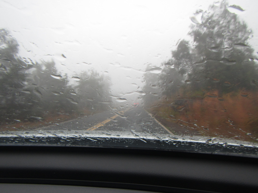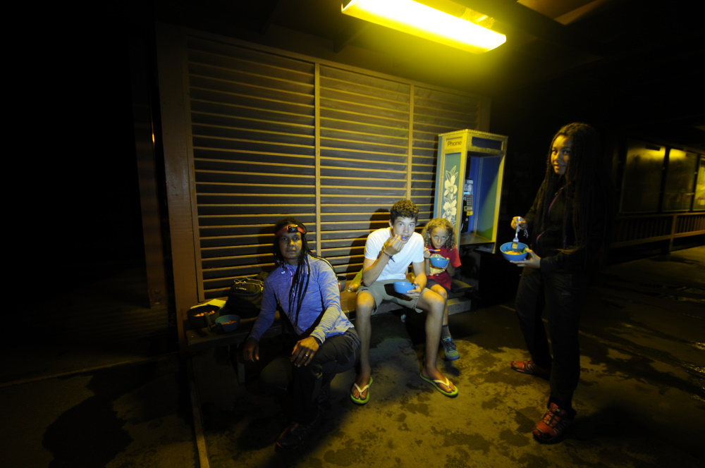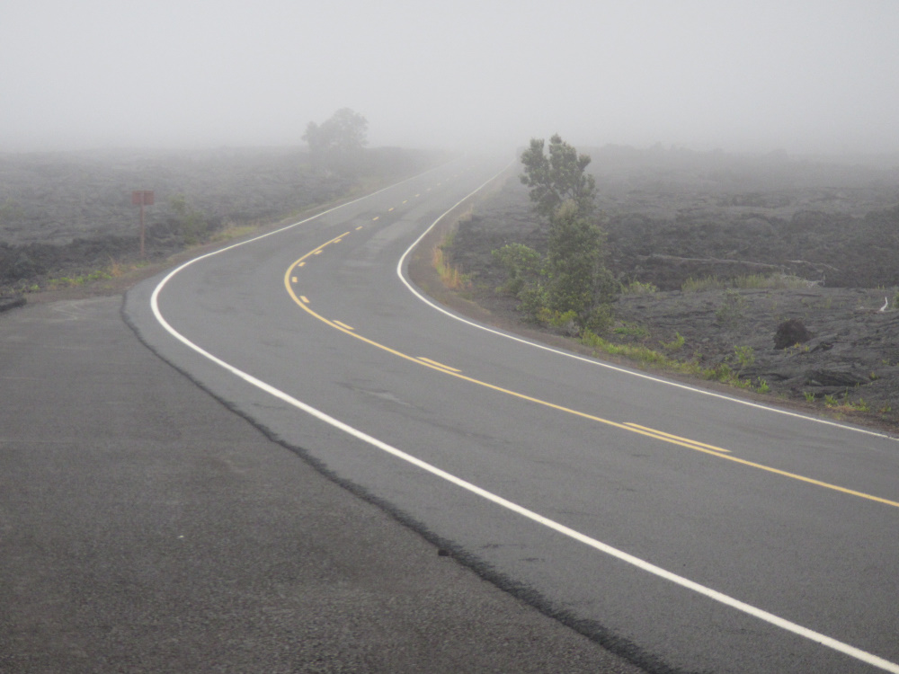 Même si le Kilauléa n’est même pas à 1000 m au-dessus de l’eau, le climat est tropical et les après midi pluvieuses. Se lever tôt, avoir des tentes étanches et improviser des soirées sympa au Visiter Center.