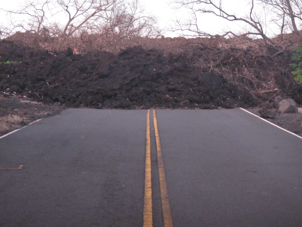 La route d’avant la coulée de 1974 et le bout de la route à priori depuis mai 2018.